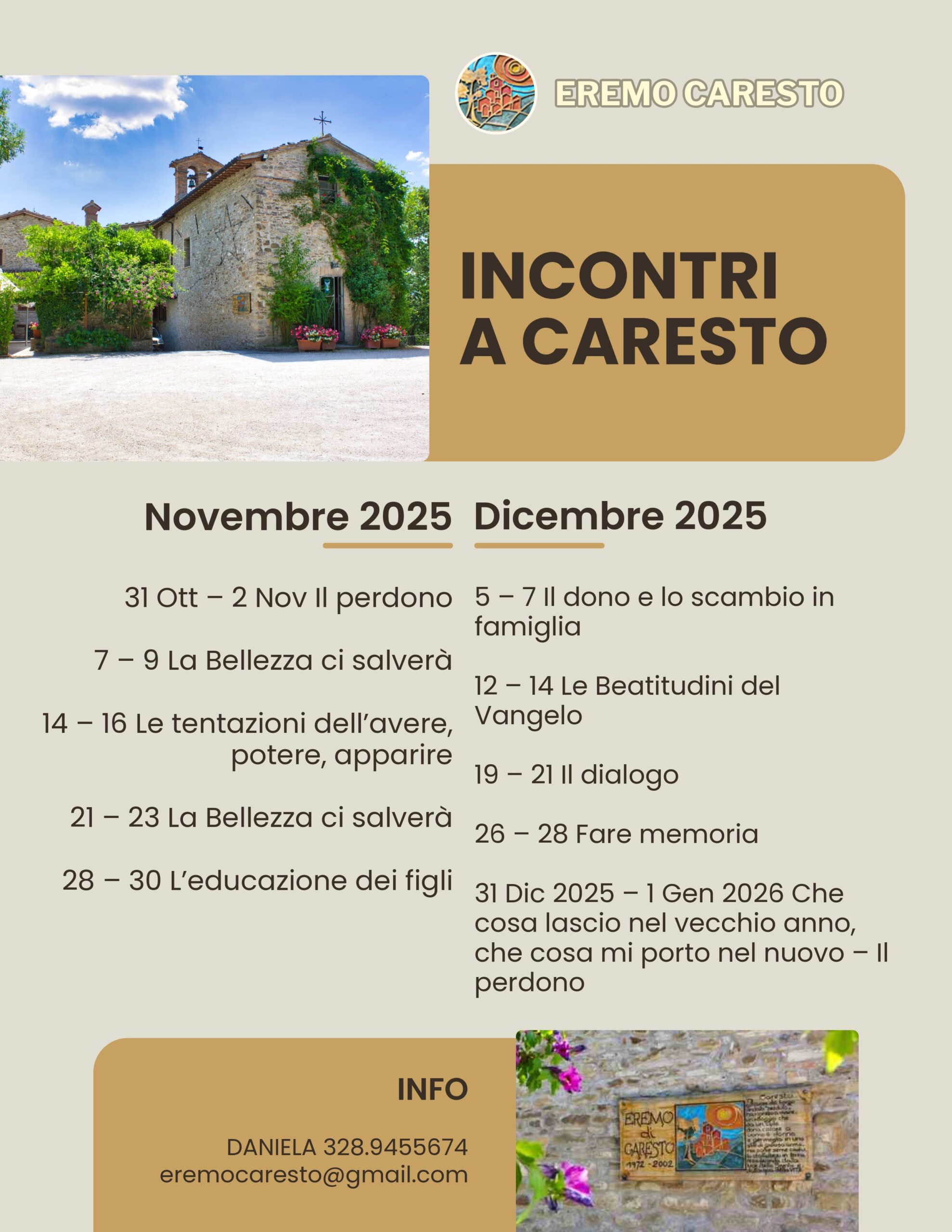 Gli incontri a Caresto dei mesi di Novembre e Dicembre 2025.